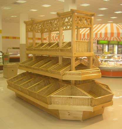 Торговое оборудование, плетеная мебель из лозы, хлебные стеллажи