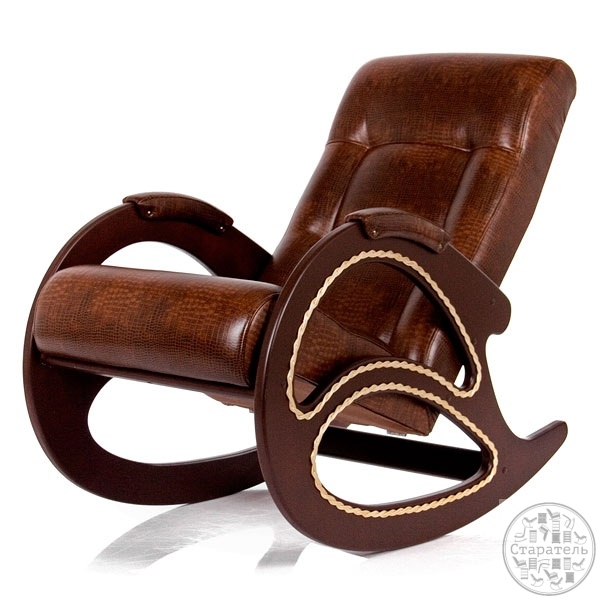 Кресло-качалка Президент экокожа Различные варианты обивки. Цветовые варианты экокожи - коричненвая, белая, жемчужная, крокодиловая кожа. Цвет каркаса - тёмный орех. Основные характеристики Производитель: Dondolo Вариант поставки изделия: В собранном виде. Изделие готово к использованию. Количество упаковок изделия: 1 шт Ширина: 600 мм Глубина: 1100 мм Высота: 900 мм Выдерживаемая нагрузка: 150 кг Конструкция кресла: Традиционное Используемые в каркасе материалы: Дерево Используемые в каркасе цветовые варианты: Темный орех Мягкая обивка/подушка: Искусственная кожа Особенности: С подголовником Ширина сидения: 500 мм Глубина сидения: 500 мм Высота сидения: 400 мм Высота спинки: 750 мм